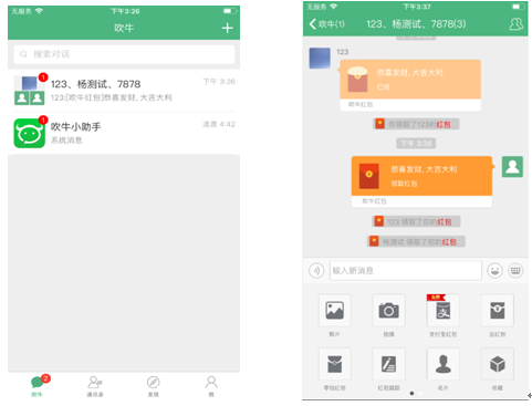腾讯公司主张“吹牛”软件中提供红包收发服务,在红包发送接收全过程中所使用的红包发送页、聊天气泡、开启页、查看详情页等界面全面抄袭、模仿腾讯公司“微信红包”相关界面。此外“吹牛”软件中还使用与“微信”软件底部界面“聊天、通讯录、发现、我”图标高度近似的图标等。上述行为涉嫌侵犯腾讯公司相关作品著作权,并构成不正当竞争。