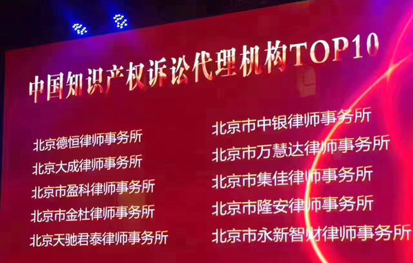 >爱游戏>关于我们>荣誉概览>2017>荣登2016年度中国十佳知识产权诉讼代理机构排行榜